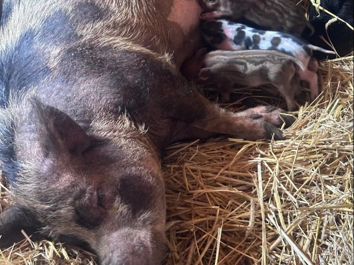 Two adult pigs managed to survive a local fire and are recovering. Unexpectedly one of the pigs was pregnant and gave birth to nine piglets. We have stepped in to foster and rehabilitate all 11 pigs and now we need your help!